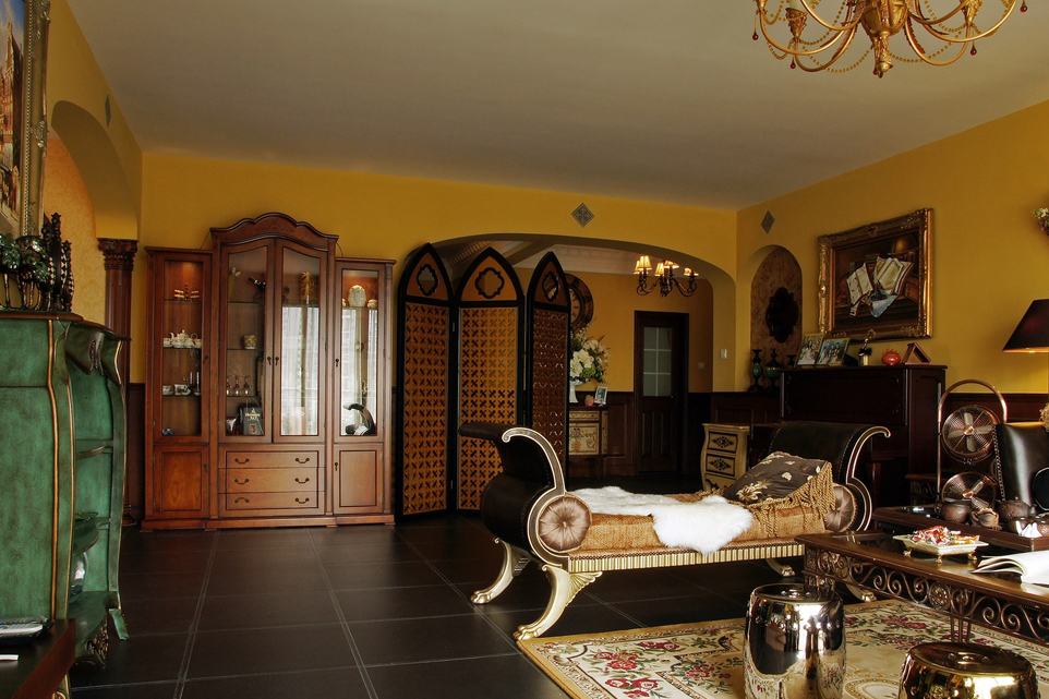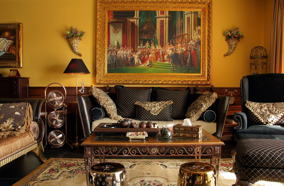 *皇家貴族* 語出業(yè)主Angel:“御金香,這個好,有氣派,有皇家貴族的味道...” 篩選作品名字時,我拿出幾個備選名,與Angel逐個淘汰后,鎖定《御金香》。 *風格大跳躍* 與之前的作品《珊瑚島奇遇記》不同,這次的設計風格跳躍很大。Angel家適合美式風格,可能跟Angel之前長期生活在美國有關系。設計過程中我還在想,可否“植入”中式古典元素,做成“形散神不散”的后現(xiàn)代混搭風格。自從在“加洲地帶”選定床和衣柜款式后,我立馬打消了這個念頭。最后只是象征性地在茶幾旁邊植入兩張中西合壁的陶瓷凳。 *暴發(fā)戶* 語出Angel的先生:“導火牛。不會是那個顏色吧?太暴發(fā)戶了,我不要暴發(fā)戶的感覺,很土。” 當客廳墻裙還是半成品時,Angel的先生以為是成品油漆的顏色,指著墻裙納悶地說道。 我馬上重復在工地經常說的一句口頭禪:“是半成品。還沒上好顏色。”整個設計完成后會凸顯歐洲貴族氣。 *拿破侖他老媽呢?* 沙發(fā)背后的巨幅掛畫,由于畫師的“偷工減料”,拿破侖加冕圖上的另一關鍵人物--拿破侖的老媽不在畫中。 我們又跑回油畫村,重新?lián)Q了一幅人物更飽滿的拿破侖加冕油畫,同時將18厘米的畫框加大成22厘米。氣勢立竿見影。 *波斯王子* 波斯王子、異域風情、蝴蝶夫人、神秘尼羅河... 無論以怎樣的角度審視,客廳沙發(fā)傳達出每個細節(jié)的氣質都耐人尋味。 在不少家具賣場看過一些山寨版。都沒有這樣的神韻。 *夏威夷瀑布* 客房的藍色條紋布、青果色墻漆、米白吊扇..... 太陽照在“鋪滿鮮花”的床單上,夏威夷的夢停靠在傾瀉的窗紗上... *韓版青春美少女* 語出Angel的QQ簽名款,這是她給女兒房的定義。女孩房的風格定位與客廳、書房的絕然不同。 根據(jù)年齡的劃分,每個家庭成員都可以匹配屬于自己的個性空間。仍是“以人為本”的設計核心理念。