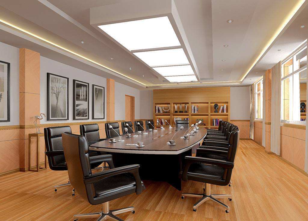 會議室照明要考慮會議桌上方的照明主為要照明。使人產生中心和集中感覺。照度要合適,周圍加設輔助照明。